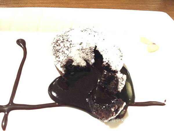 口感像巧克力蛋糕, 切開中間會有熱巧克力流出來, 口味相當濃郁順口喔!
