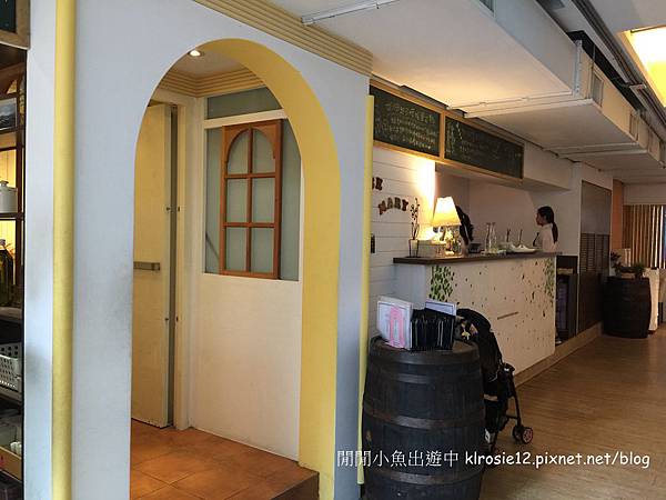 偌大的屋內用餐空間則是一片蔚藍的地中海風格裝潢, 讓人感覺在裡面用餐很舒服呢!